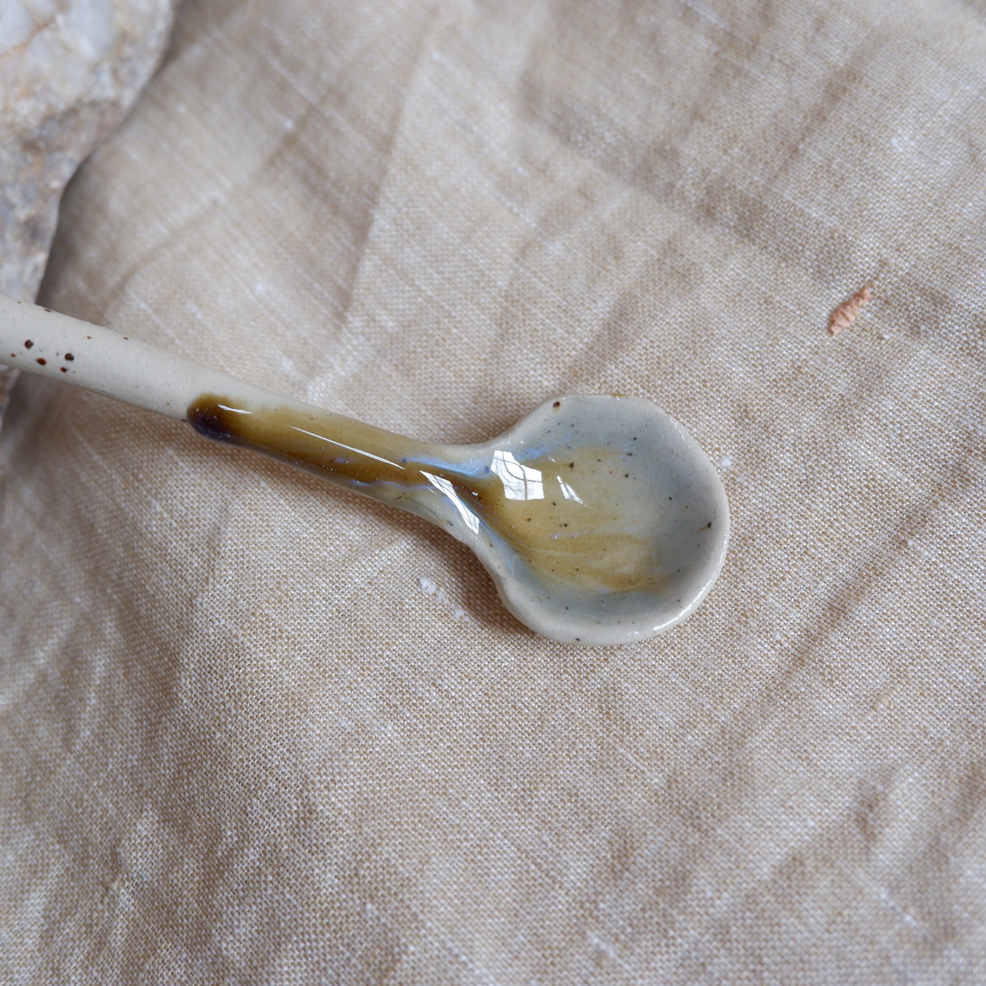 Handmade ceramic spoon crafted from speckled beige clay. Food safe and perfect for salt, spices, or small rituals.