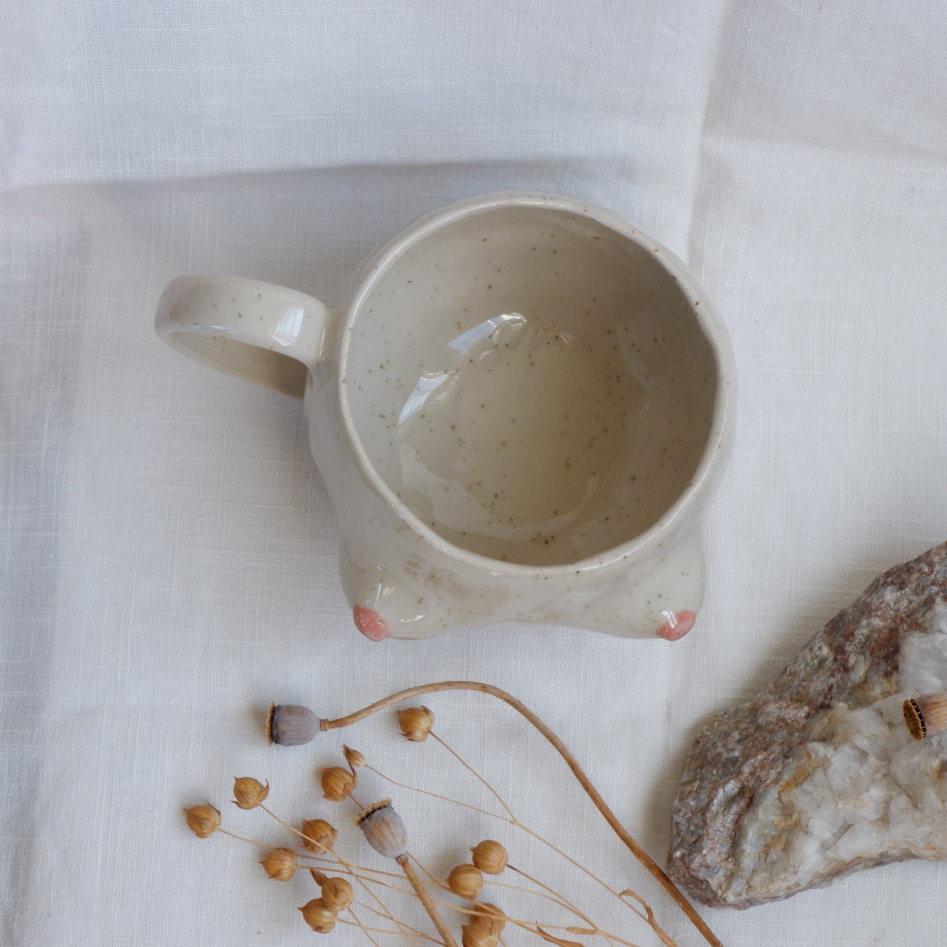 Shaped slowly by hand with the pinch technique from beige clay. On the unglazed bottom, you’ll find my signature as a small reminder of the hands that made it.
