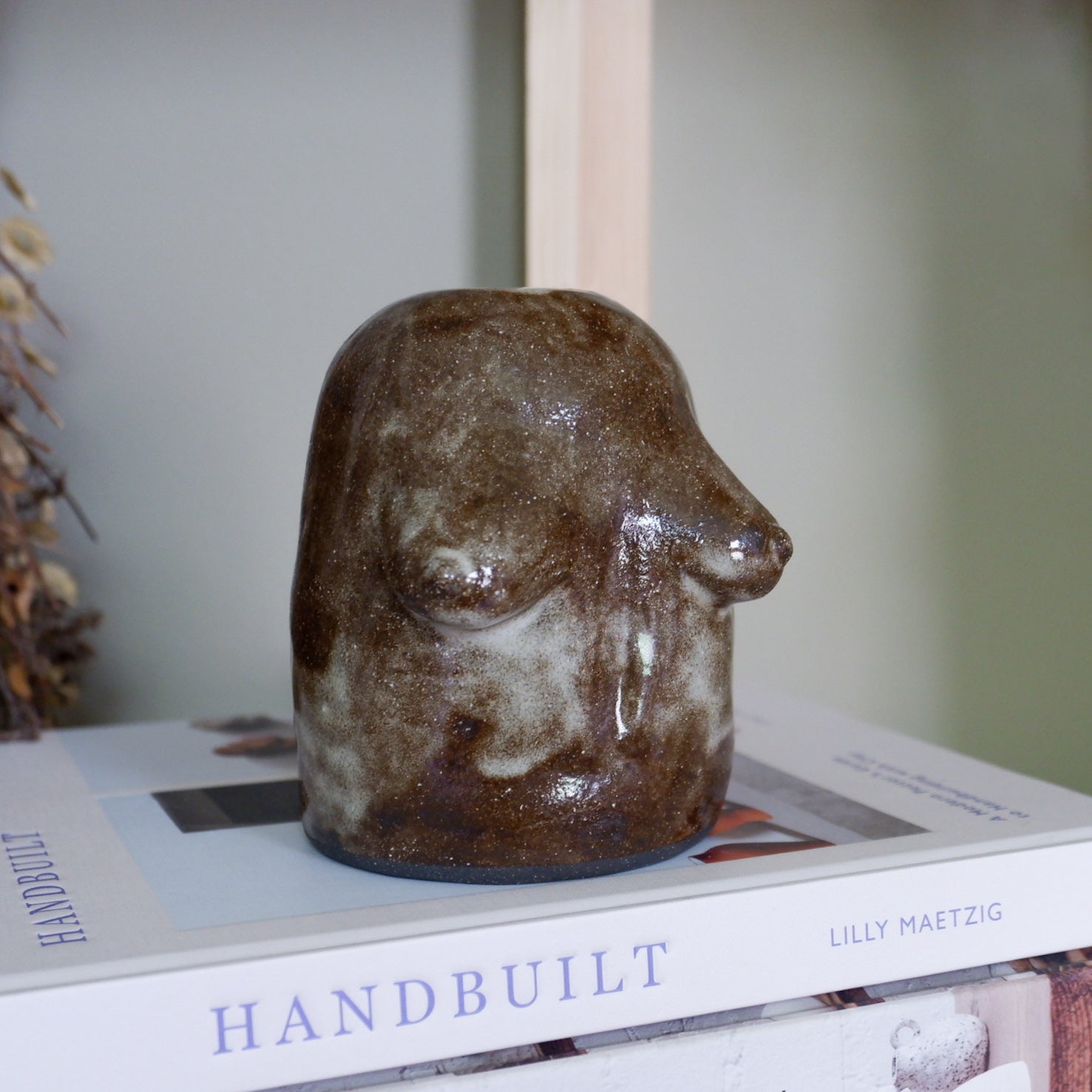 This sculptural vase is made as a tribute to all women. It is made with a rough black clay and decorated with a glossy glaze. It's watertight. The soft lines and organic form makes this a timeless sculpture that will last forever. The vase is made out of stoneware clay, high fired at 1230°C, made to last for years to come, if handled properly.