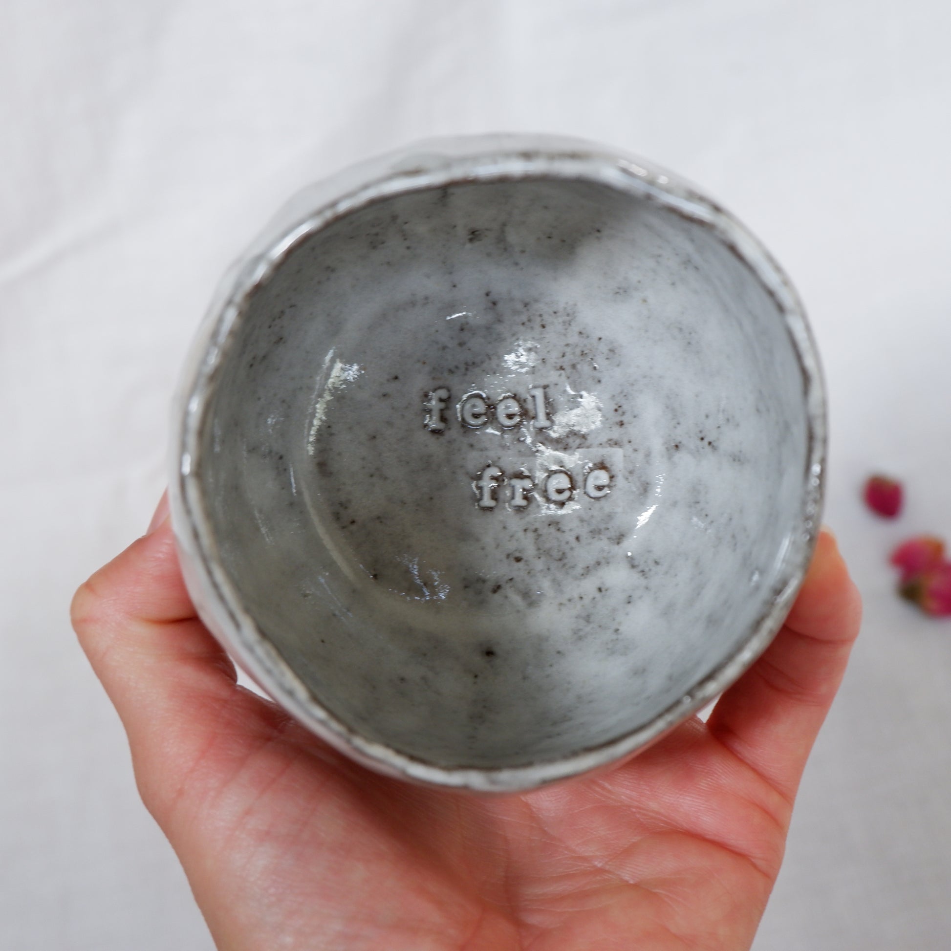 Due to the handmade process, the surface is uneven and natural-looking; small imperfections are a welcome addition to my work. The cup is made from stoneware clay and fired at 1230°C. It is food safe, strong and durable, so you can enjoy using it every day. It is dishwasher safe, but hand wash is recommended.