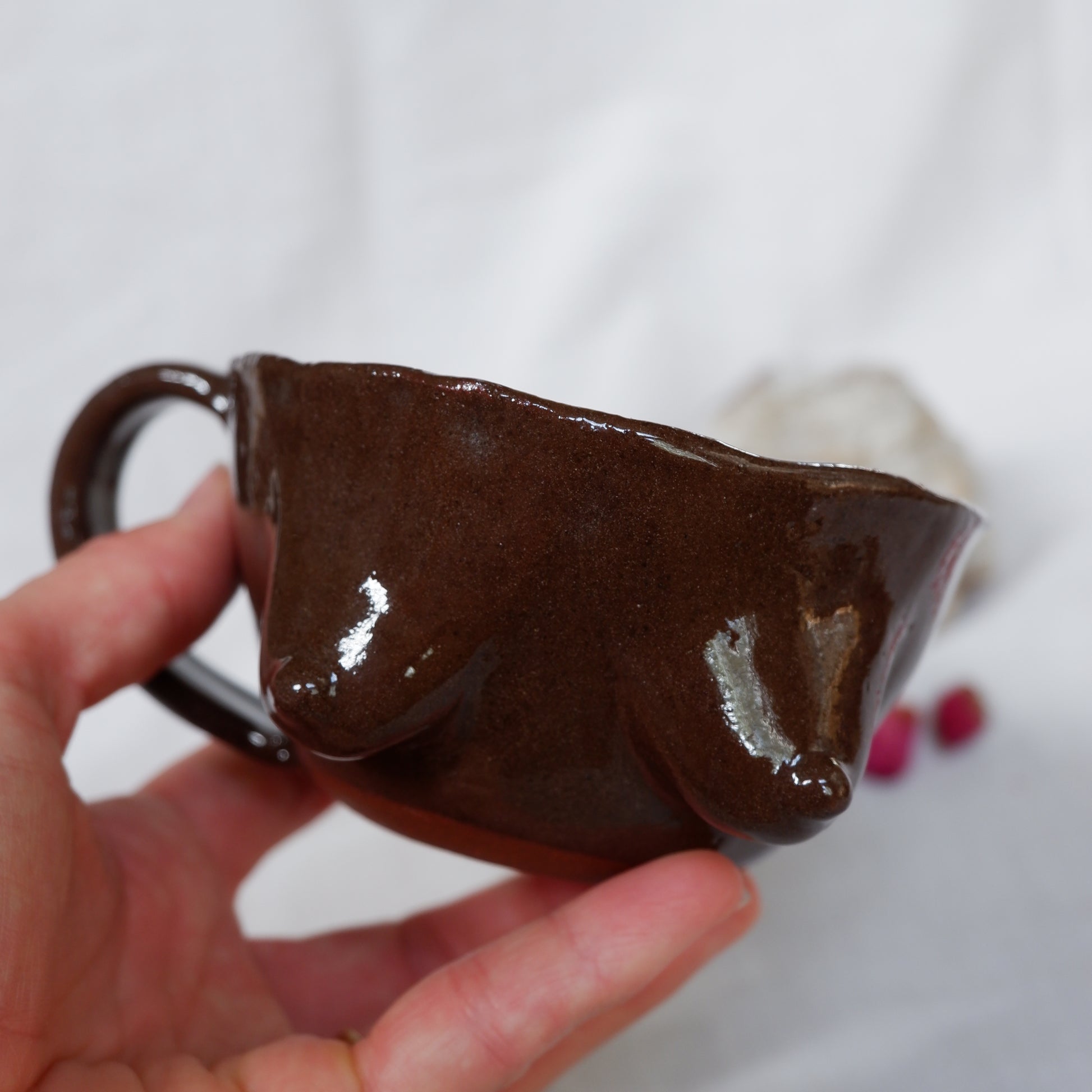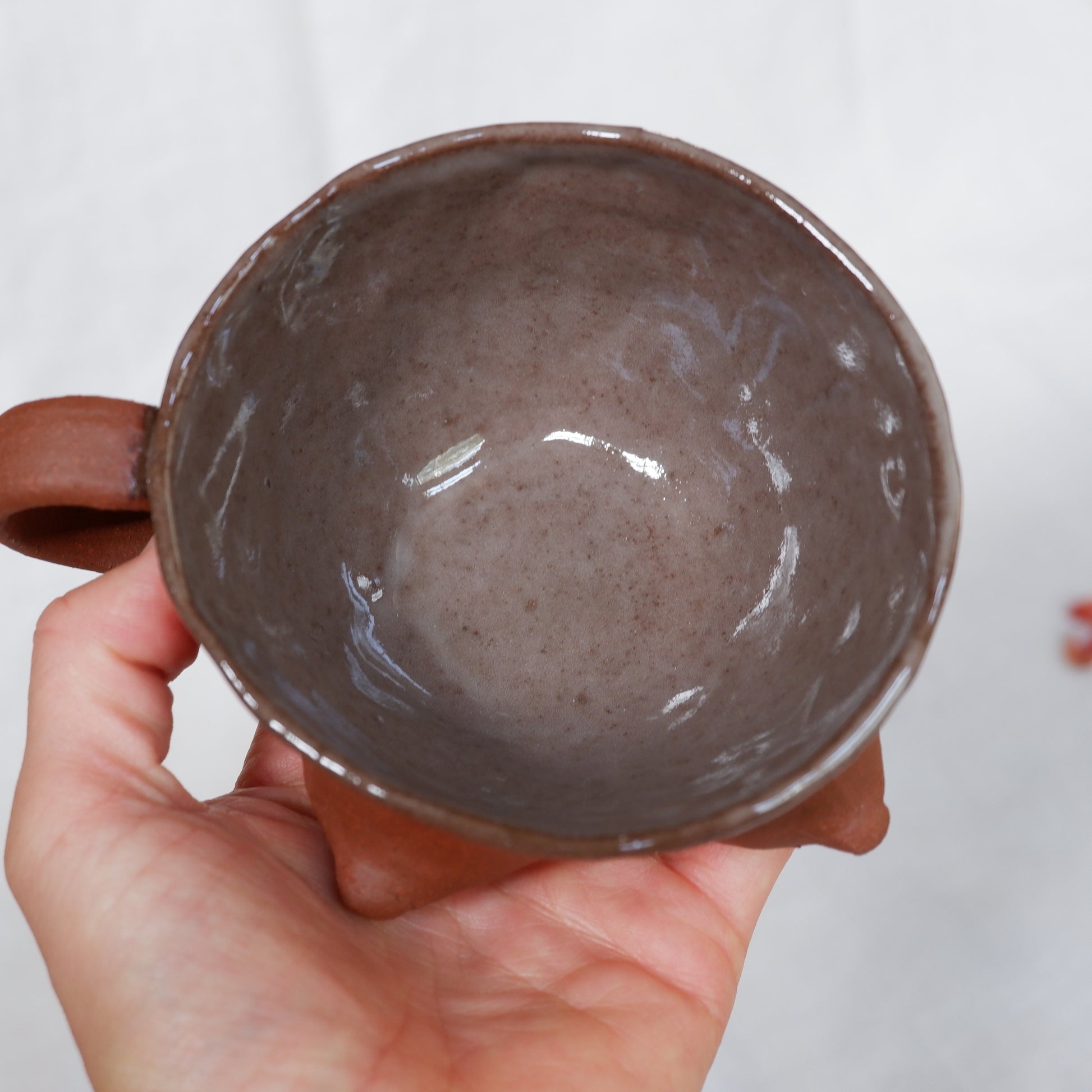 This mug carries the warmth and glow of the Ember Collection, handcrafted from dark red clay using the pinch technique. Each piece is handmade and unique, with a combination of glazed and unglazed surfaces that bring out the fiery, tactile beauty of the clay. Holding it feels grounding, intimate, and a little magical.