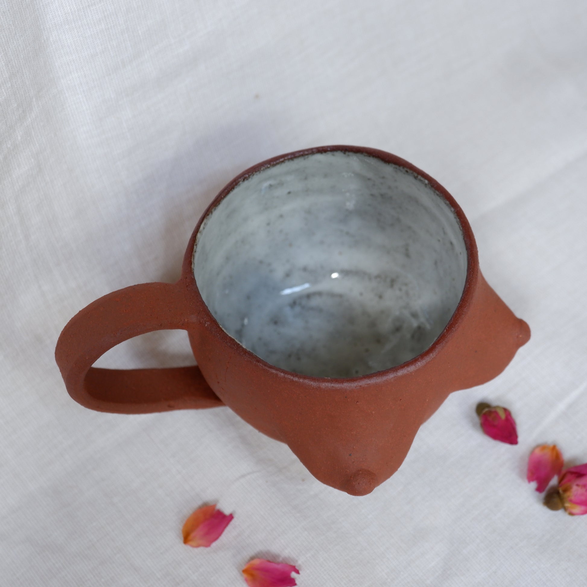 This mug carries the warmth and glow of the Ember Collection, handcrafted from dark red clay using the pinch technique. Each piece is handmade and unique, with a combination of glazed and unglazed surfaces that bring out the fiery, tactile beauty of the clay. Holding it feels grounding, intimate, and a little magical.