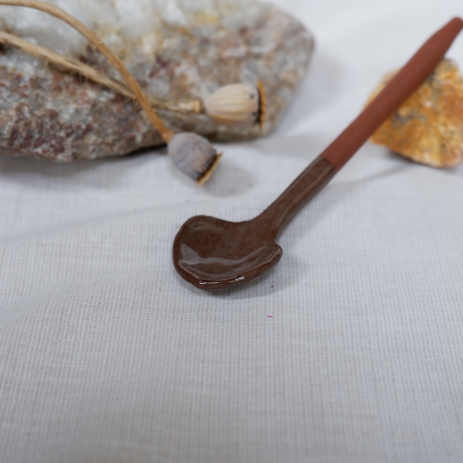Handmade ceramic spoon crafted from dark red clay. Food safe and perfect for salt, spices, or small rituals.