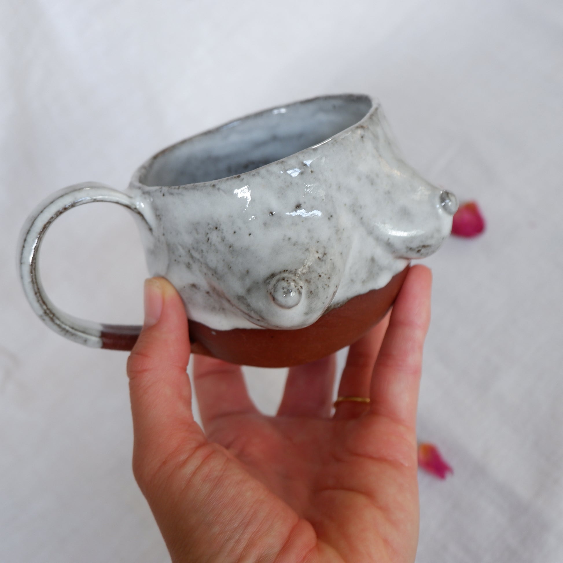This mug carries the warmth and glow of the Ember Collection, handcrafted from dark red clay using the pinch technique. Each piece is handmade and unique, with a combination of glazed and unglazed surfaces that bring out the fiery, tactile beauty of the clay. Holding it feels grounding, intimate, and a little magical.