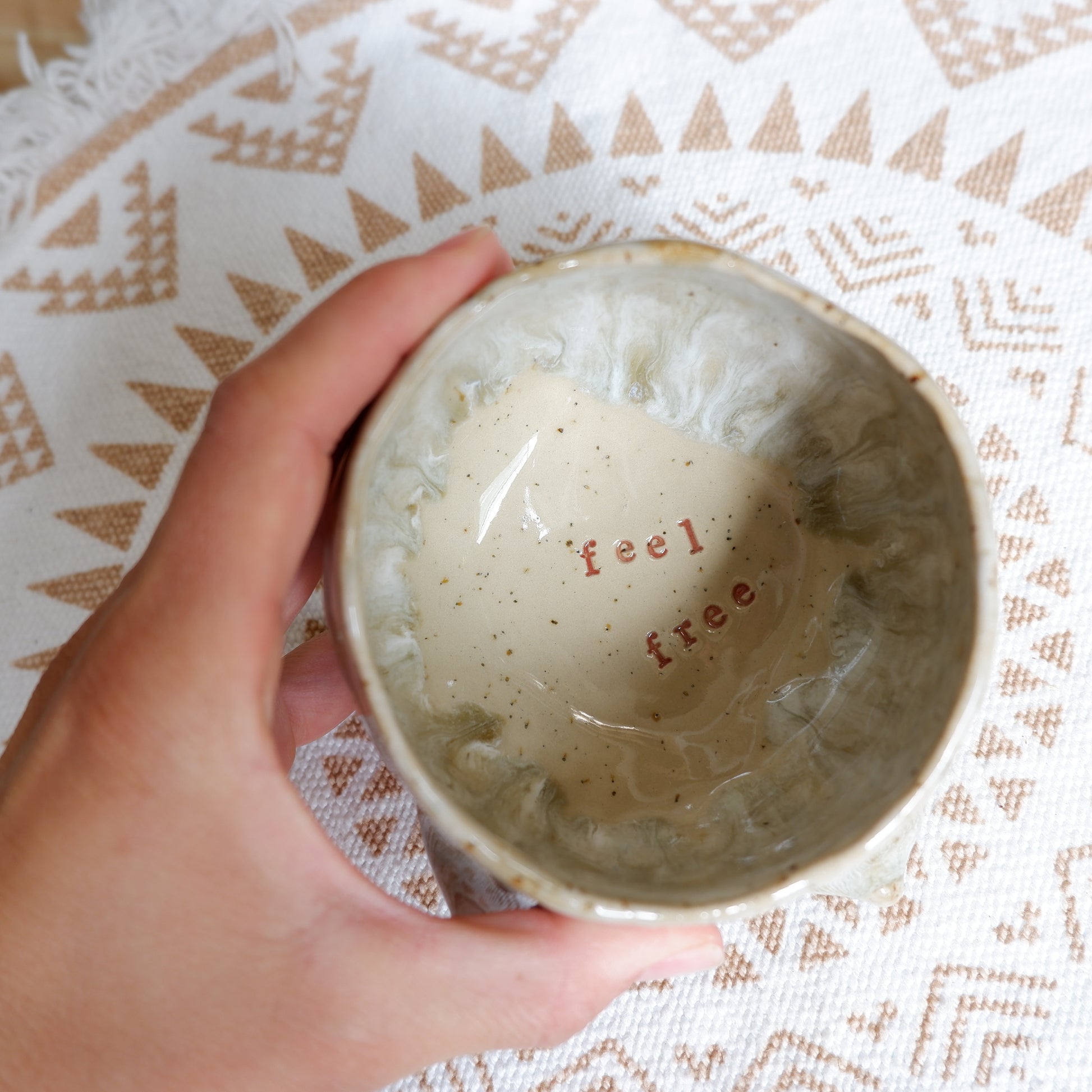 This mug carries a small hand-stamped reminder, something gentle to ground you, encourage presence, or simply invite a slower breath.