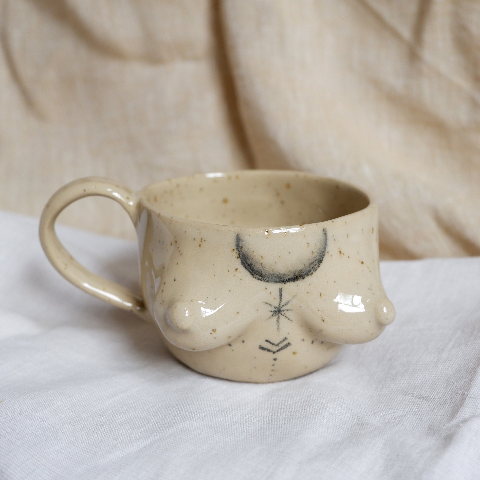 Crafted from beige clay using the pinch technique, tattoo is entirely hand-drawn, no prints or stamps, making every mug one-of-a-kind. Finished with a glossy clear glaze and signed on the unglazed bottom, this mug brings art and functionality together in a truly personal way.