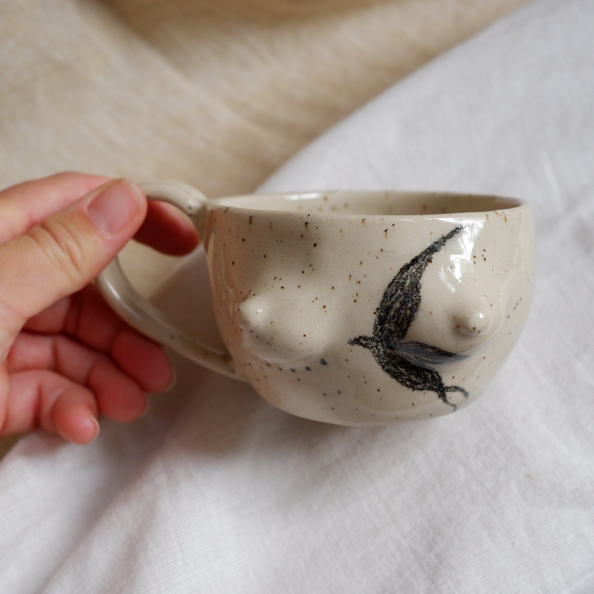 Crafted from beige clay using the pinch technique, tattoo is entirely hand-drawn, no prints or stamps, making every mug one-of-a-kind. Finished with a glossy clear glaze and signed on the unglazed bottom, this mug brings art and functionality together in a truly personal way.
