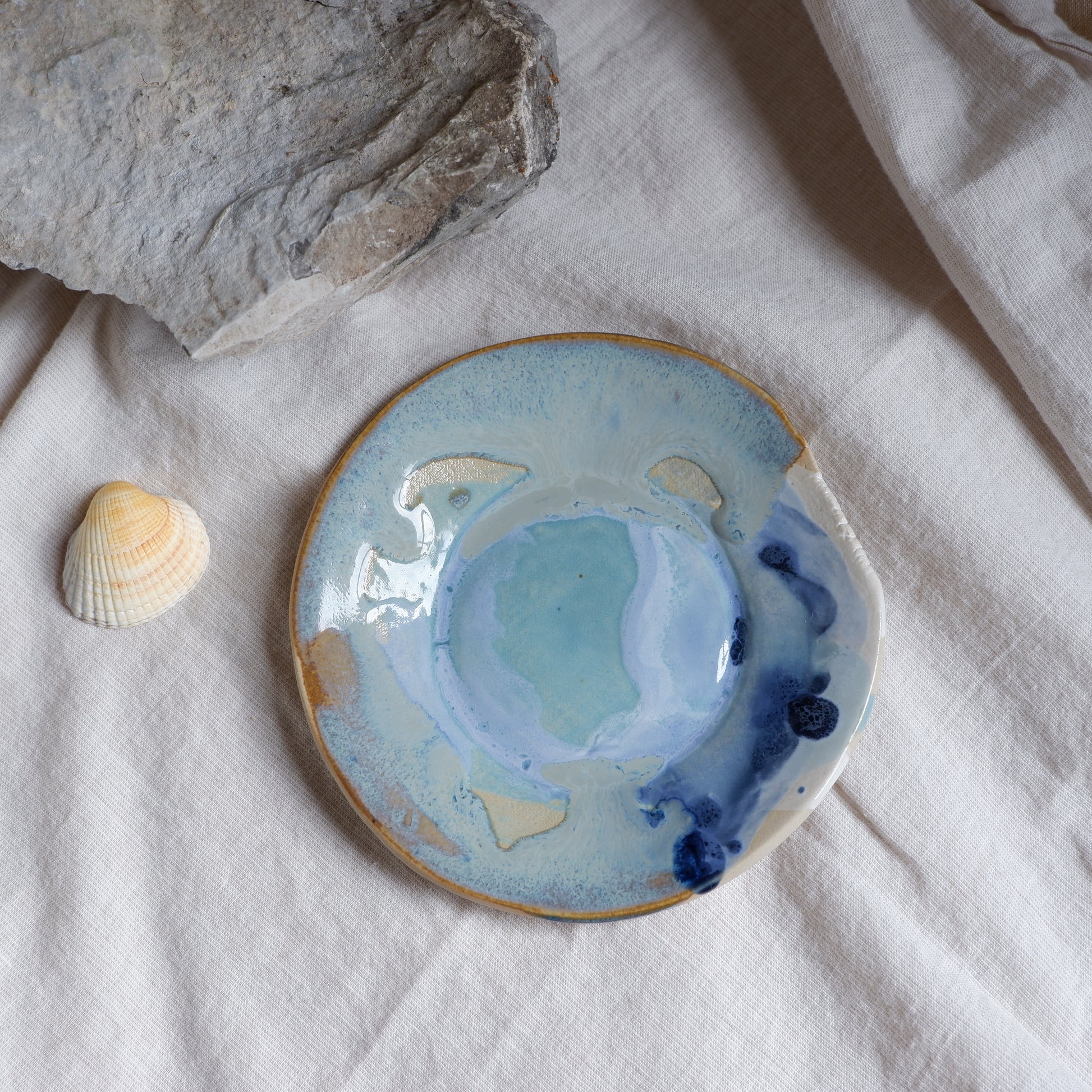 Handmade using the slab building technique from beige clay, this small plate from the Ocean Collection carries a soft, calm feeling inspired by the sea and natural coastal tones. Each piece is glazed by hand, making every plate completely unique in surface and expression.