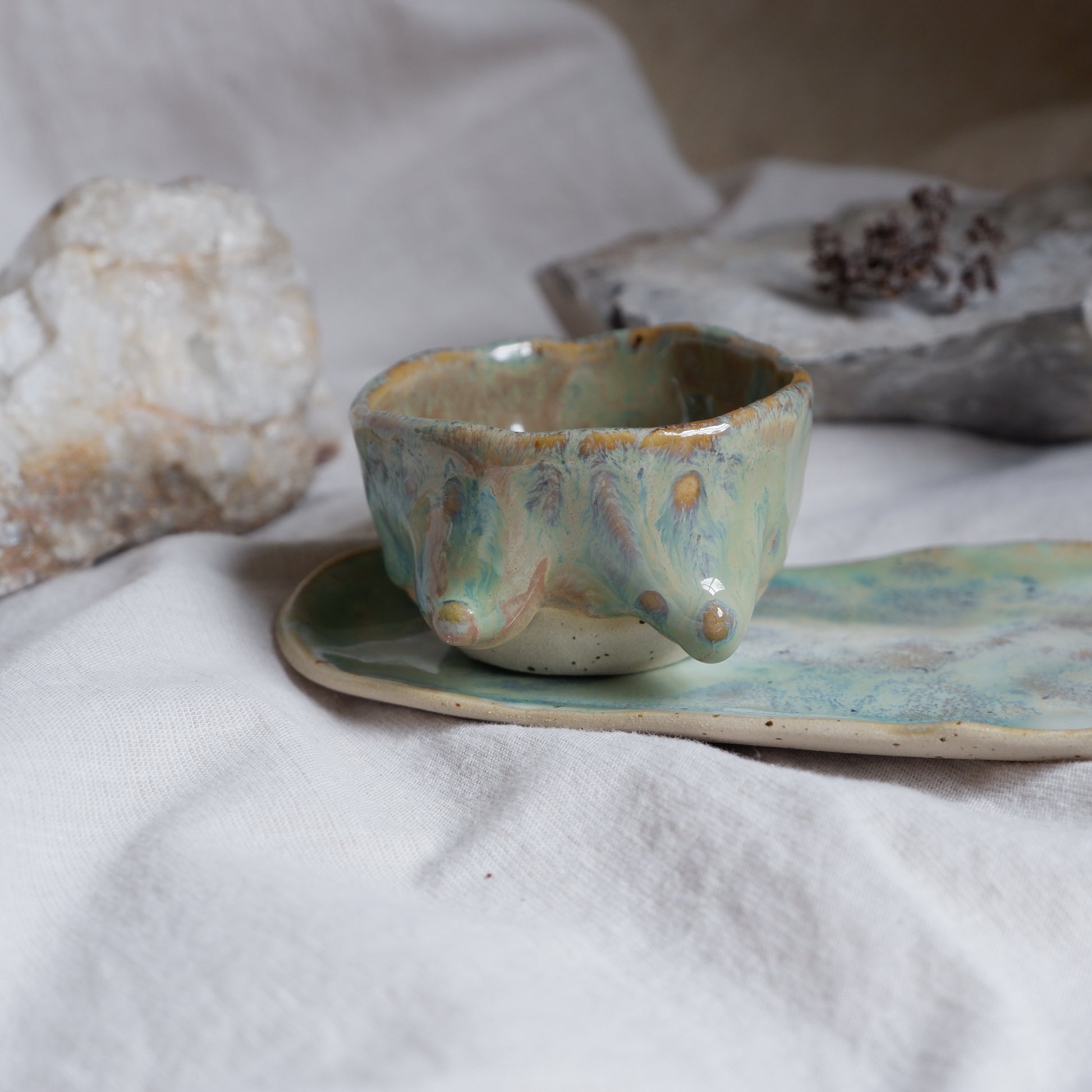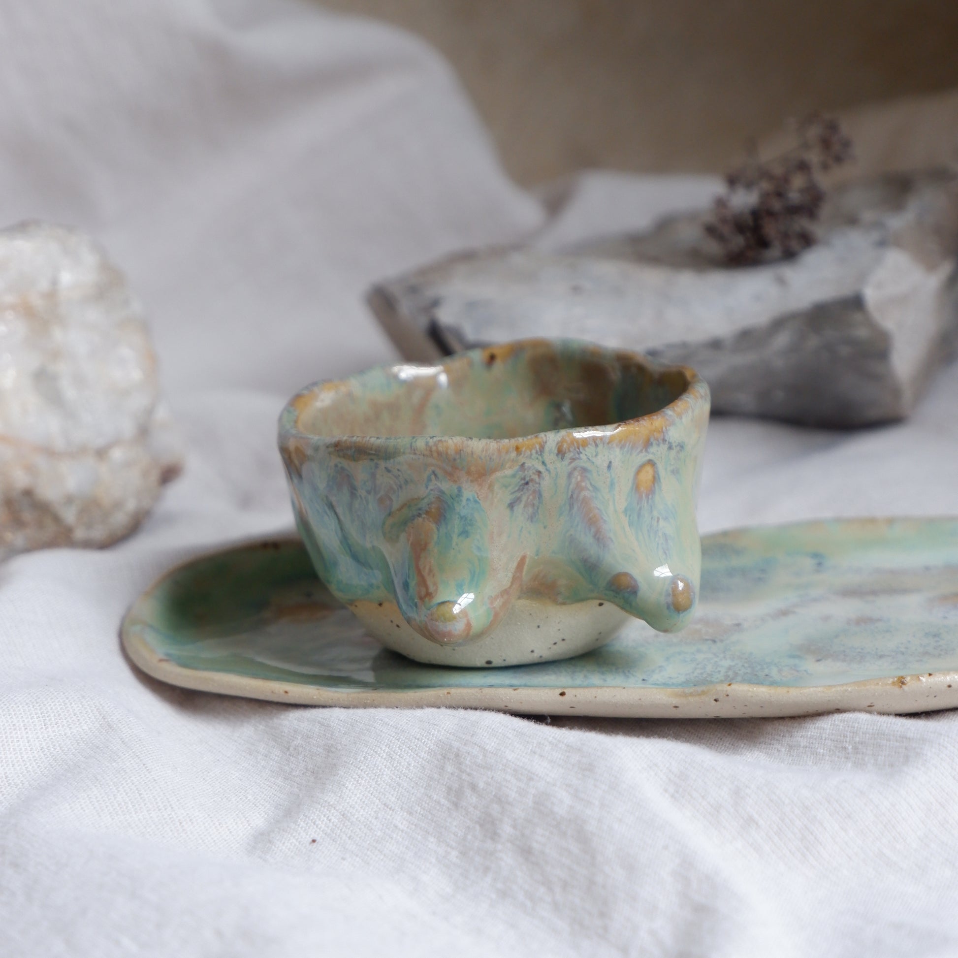 Its small size of 60 ml invites mindful moments, soft light, and quiet reflection. It is food safe, so if it inspires you, it can also hold a small sip or be used to serve dips when spring sunlight fills your table.