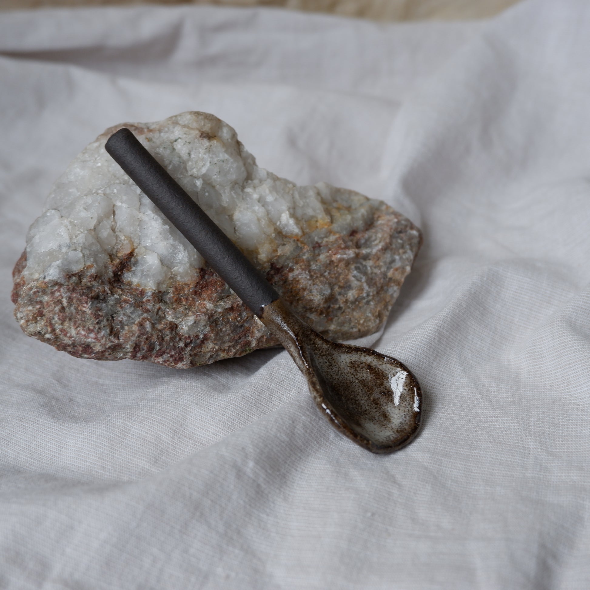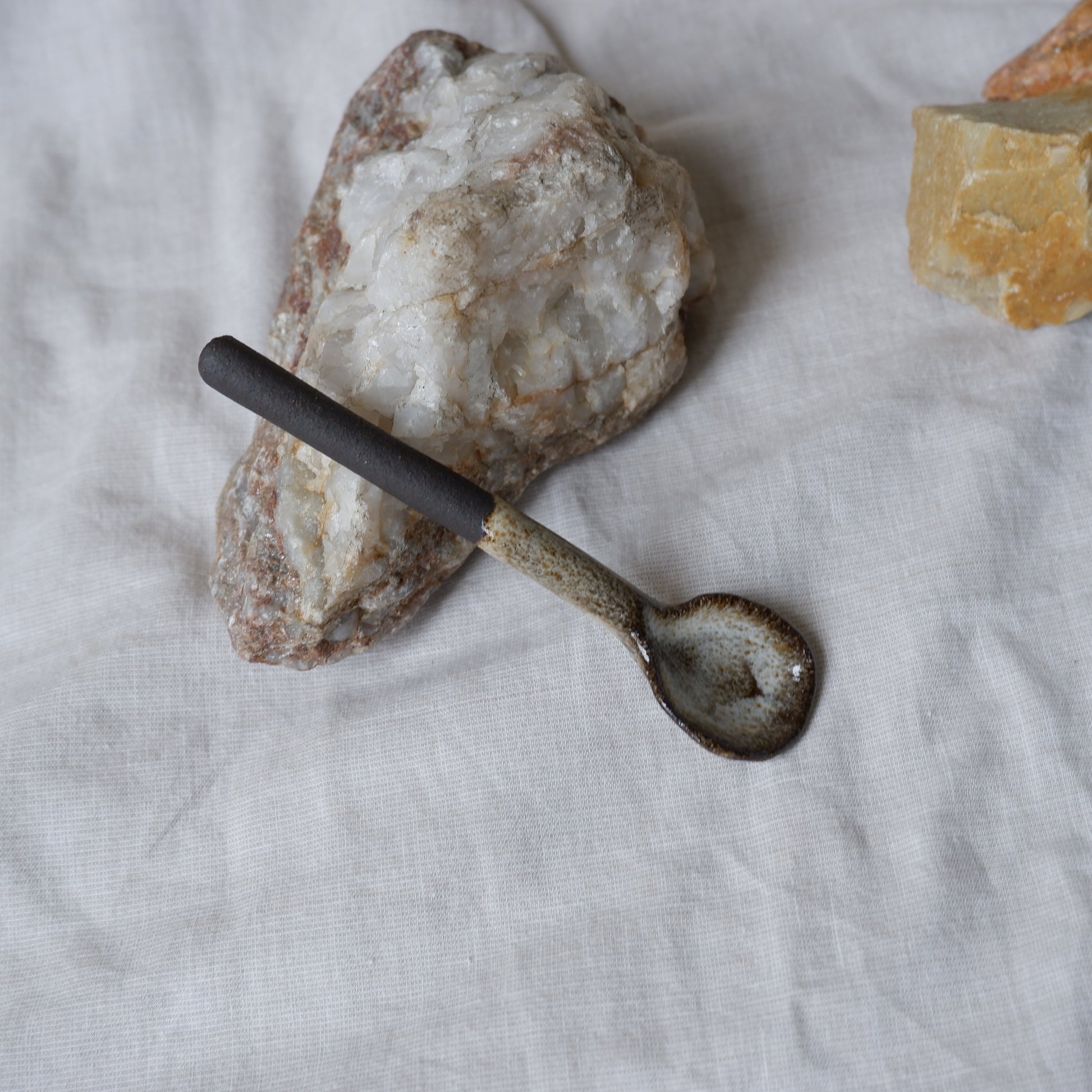 Handmade ceramic spoon crafted from brown clay. Food safe and perfect for salt, spices, or small rituals.