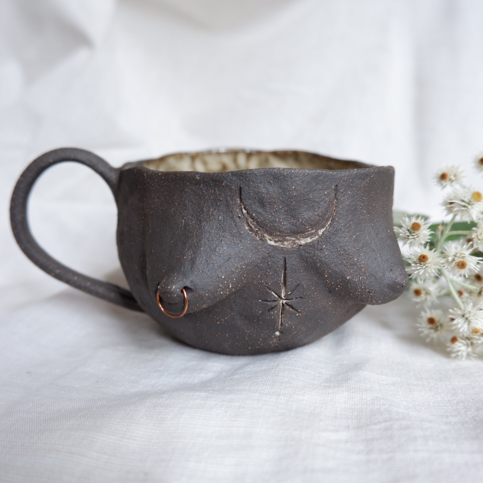 Rooted Collection // Carved tattoo mug with piercing / Symbolizes guidance and transformation