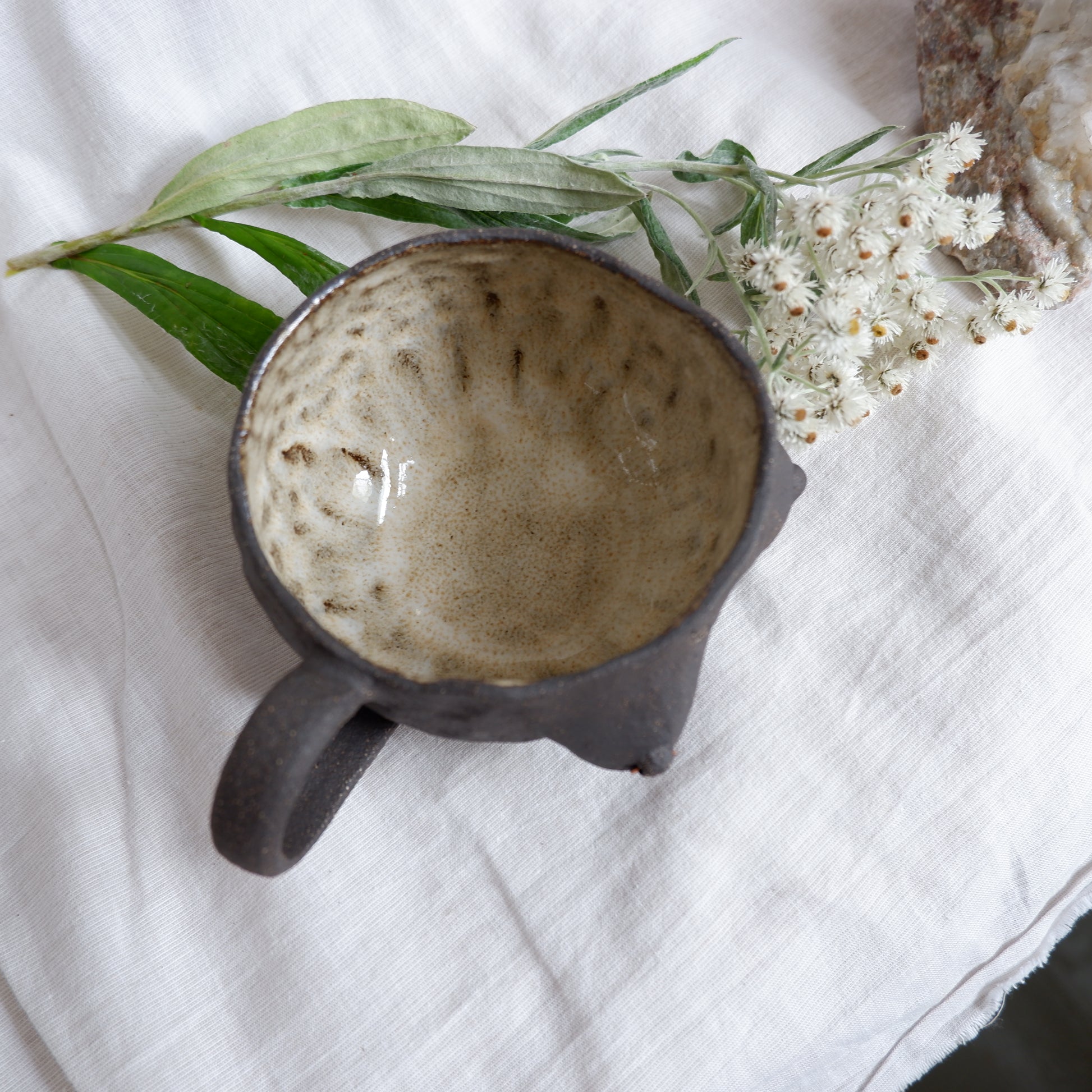 Please note: The outside of this mug is unglazed, which gives it a slightly rough texture. It feels very tactile and grounding in the hands. The inside is glazed and food safe.