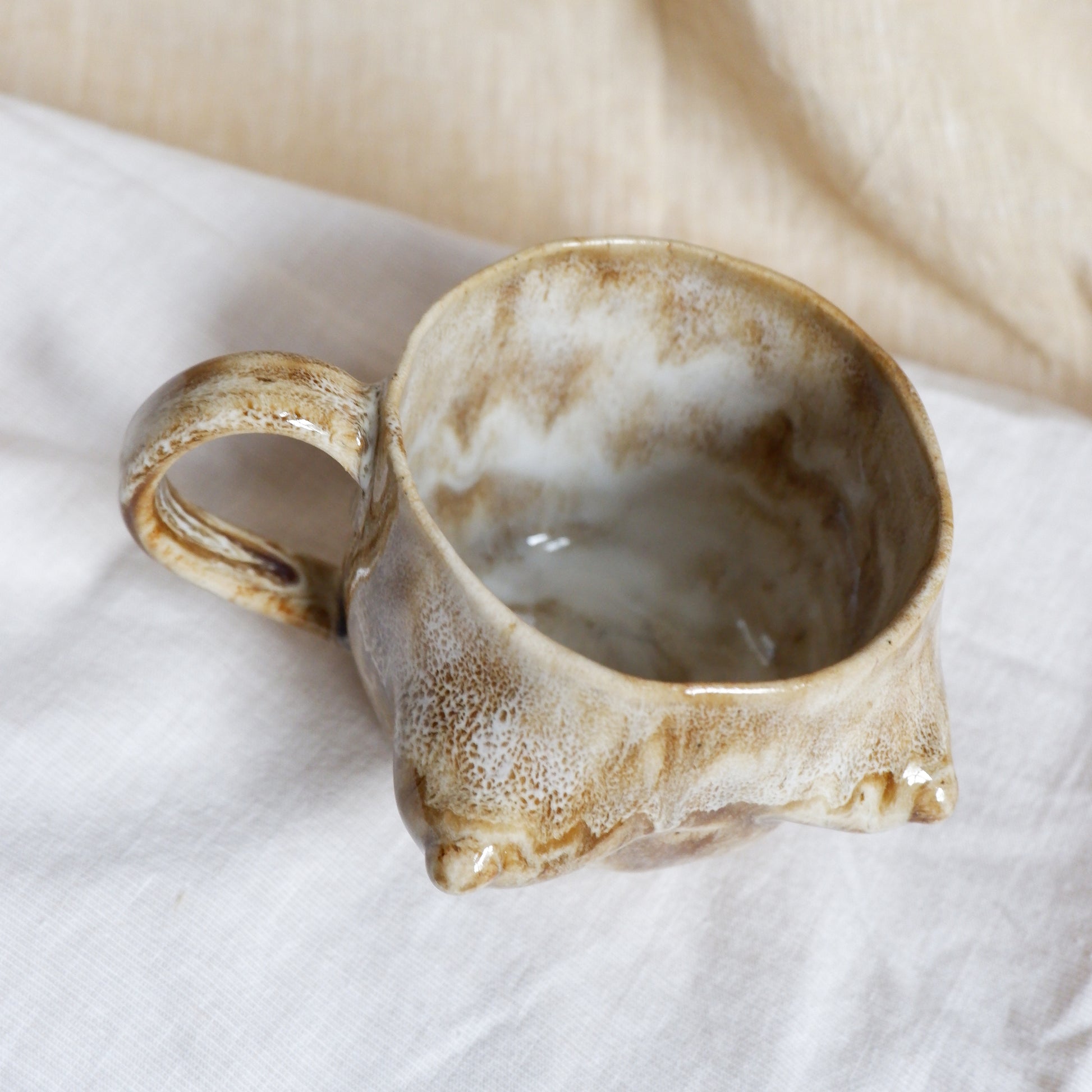 Shaped slowly by hand with the pinch technique from beige clay. The glossy glazes flow together in their own natural rhythm, giving it a character that can’t be repeated. On the unglazed bottom, you’ll find my signature as a small reminder of the hands that made it.