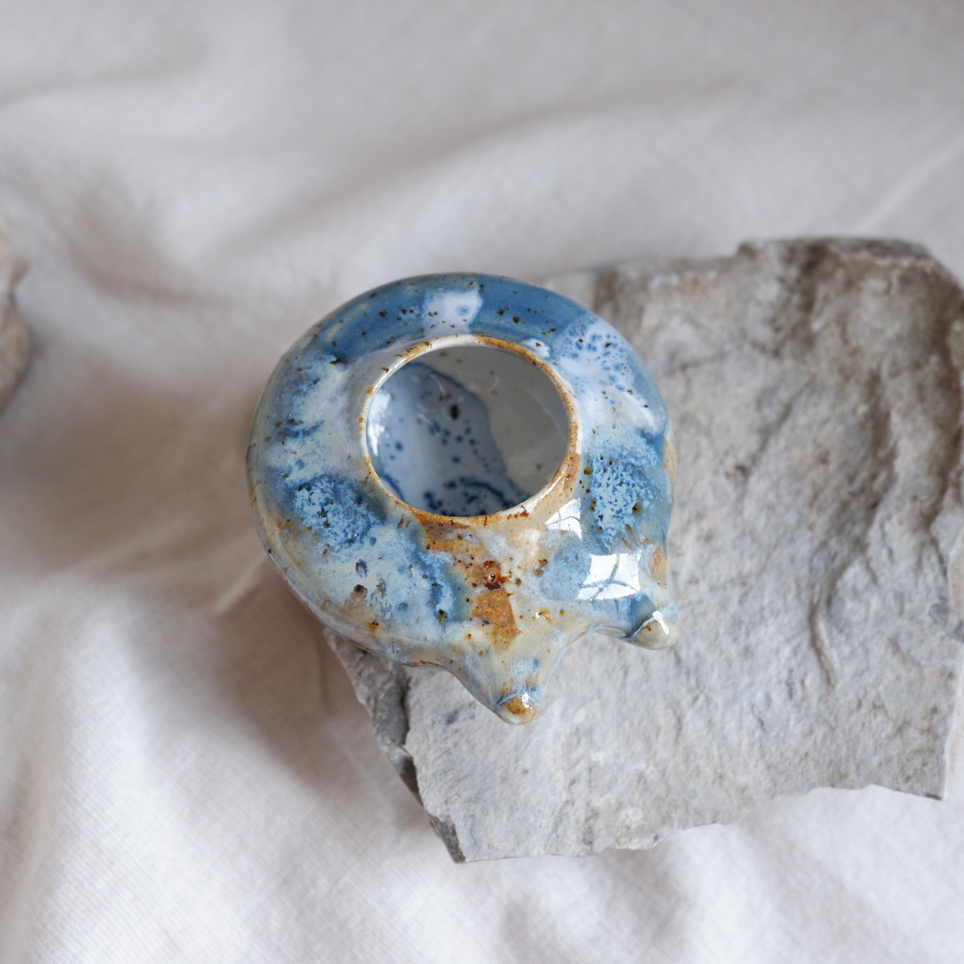 Made from speckled beige clay and hand-thrown on the pottery wheel, this tiny vase is a product of quiet, mindful studio moments. Its 4 cm height and 6 cm diameter make it ideal for a single flower, dried stems, or a subtle touch of joy on a shelf, table, or windowsill.