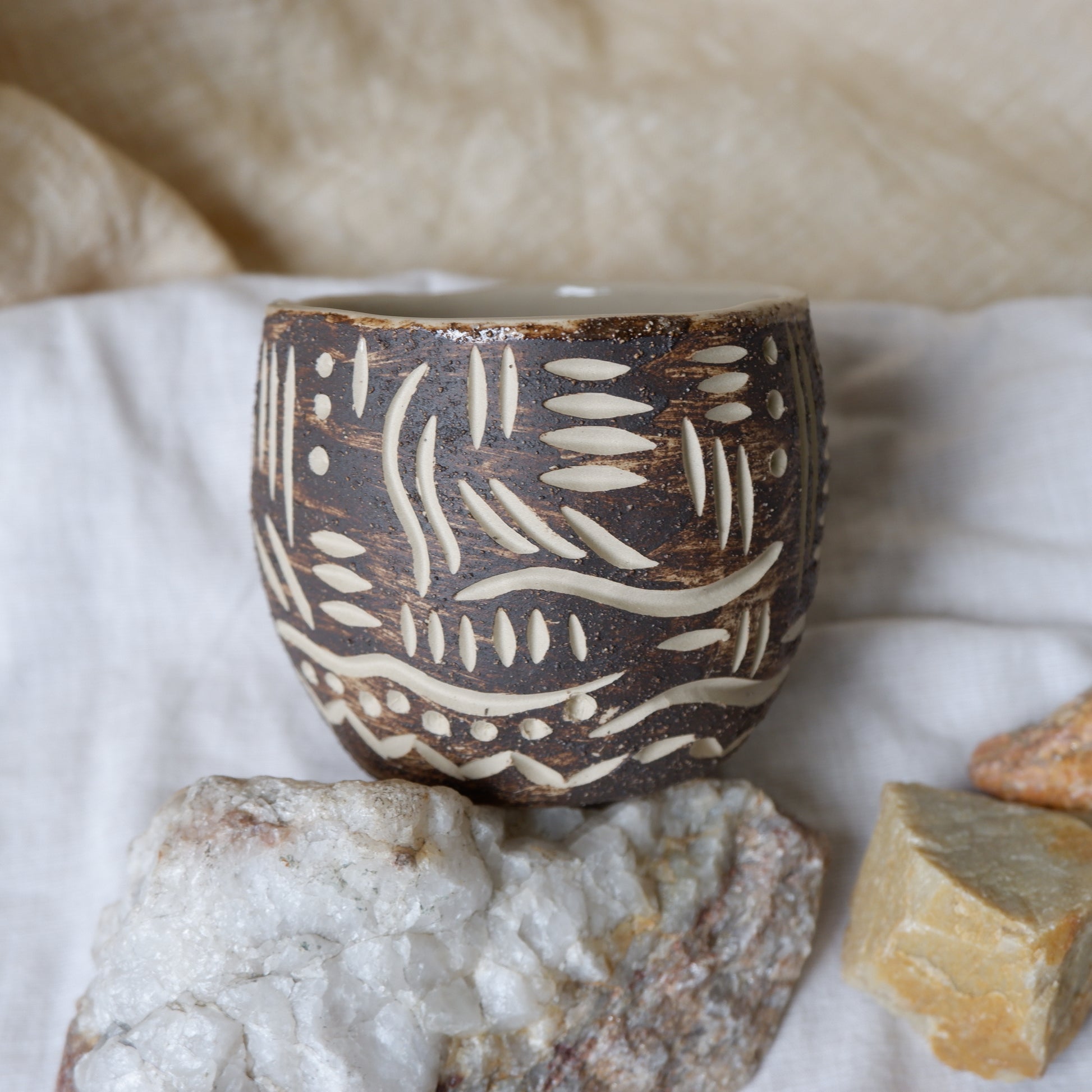 Raw, timeless, and full of quiet history. Unearthed mug feels like a treasure from another time, shaped by hand and earth. Made from a blend of beige clay and deep, rich brown clay, each mug is patiently carved by hand to be as unique as possible.