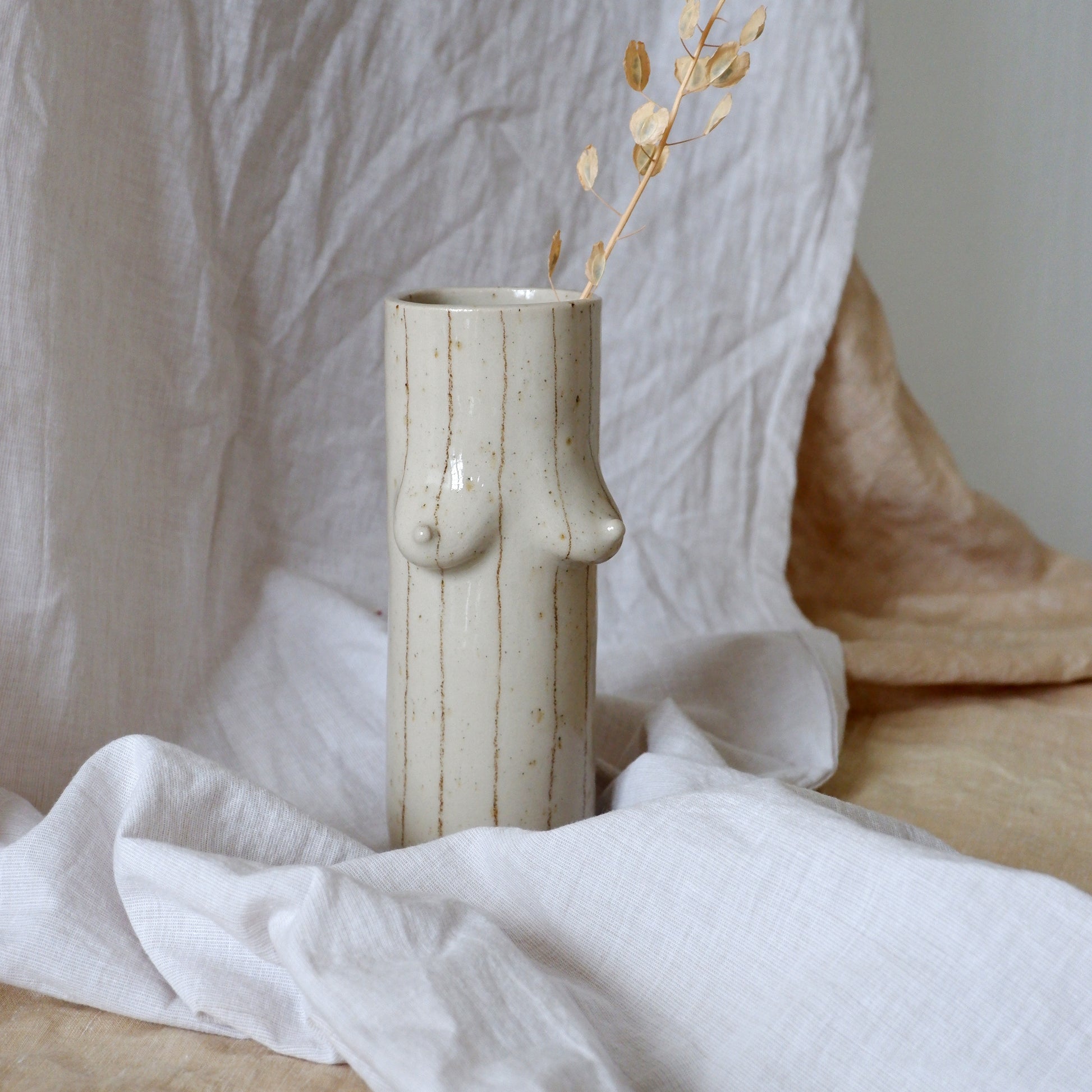 The vase is made from stoneware clay, a hard and durable material made to last for years to come, if handled properly.